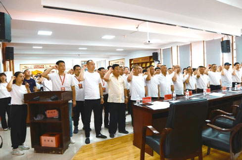 会议宣读了“两优一先”表彰文件,对受到表彰的5个先进基层党组织、23名优秀共产党员、6名优秀党务工作者获奖代表进行了颁奖。 “我志愿加入中国共产党,拥护党的纲领,遵守党的章程……”随后,25名新转正党员面对鲜红的党旗,举起右手、握紧拳头,以铮铮誓言,表达坚定不移听党话、跟党走,薪火相传、接续奋斗的信念和决心。